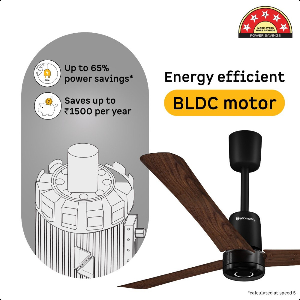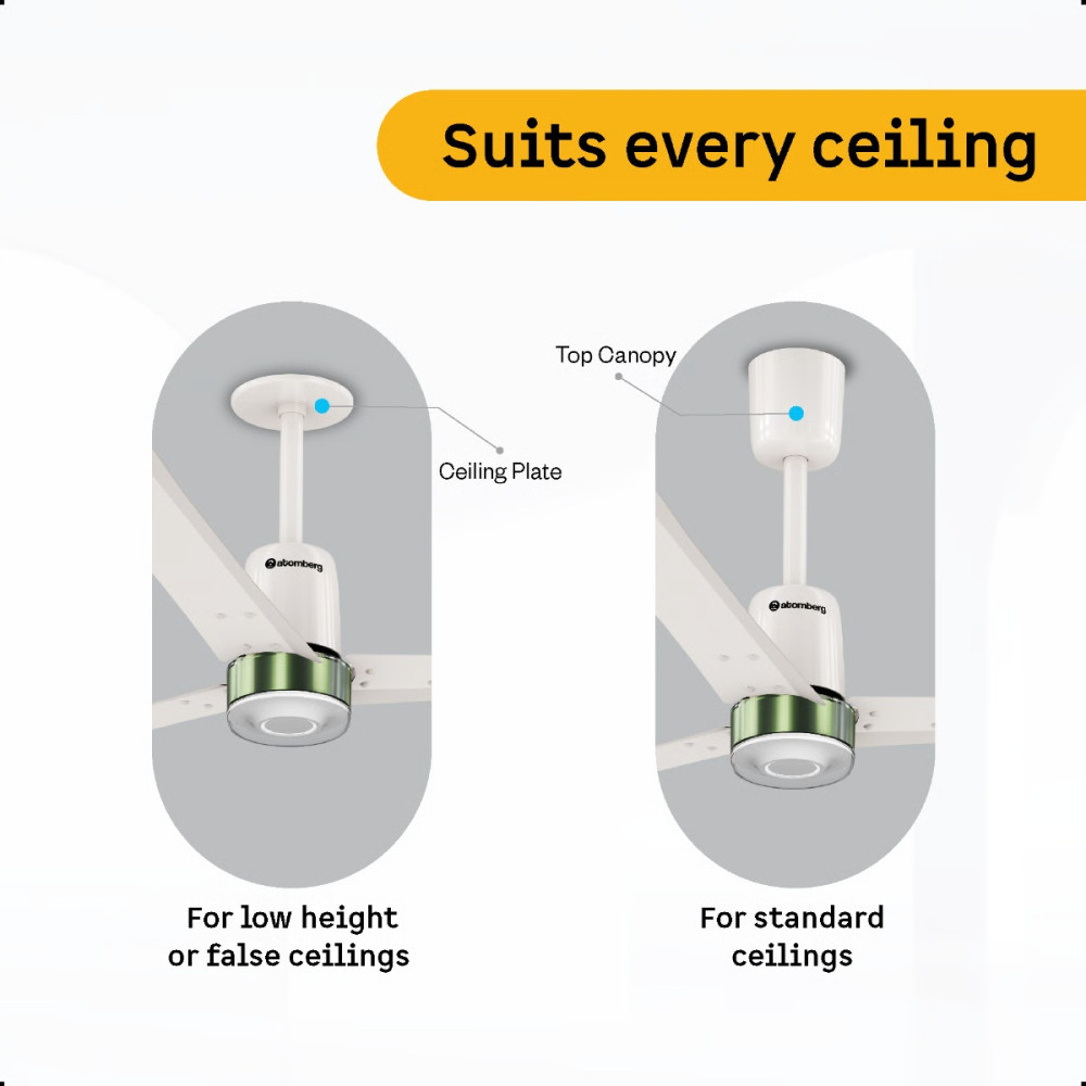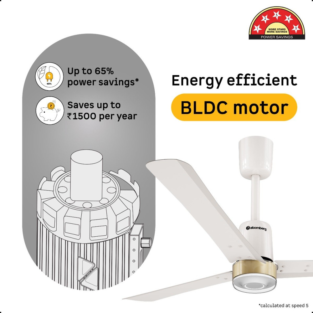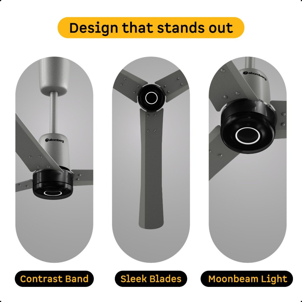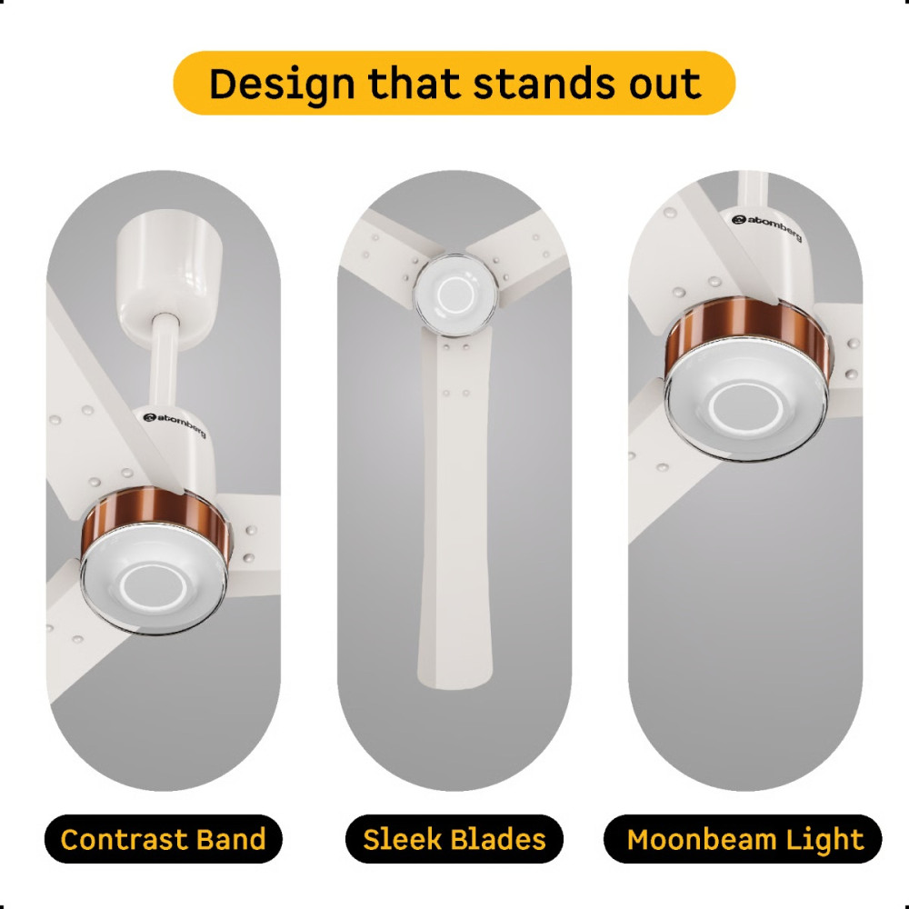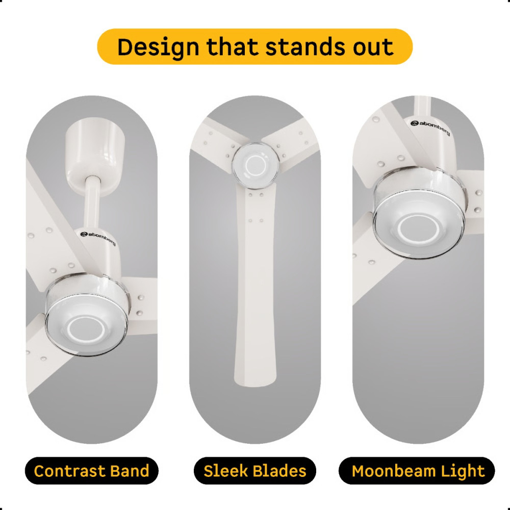 Atomberg Renesa Elite Fan comes with a 5-star rated, energy-efficient BLDC motor that consumes just 35W and gives air delivery of 230 CMM. It is easy to clean and corrosion-resistant. It has a sleek design with a unique transparent diffuser and a contrasting ring. It has a moonbeam LED light that functions as a night light. It comes with 2 intensity levels that can be controlled using the remote. Additionally, the moonbeam blinks in response to remote commands like turning the fan on/off, adjusting speed or setting the timer and sleep mode, providing clear, real-time feedback for every action. The fan runs silently at <57 dB, much quieter than regular fans. It includes Smart IR Remote enabling speed adjustment, set timers, and sleep mode, allowing easy operation. It provides consistent speed even during voltage fluctuations (165V-285V). It is easy to install on full ceiling as well as low or false ceiling.