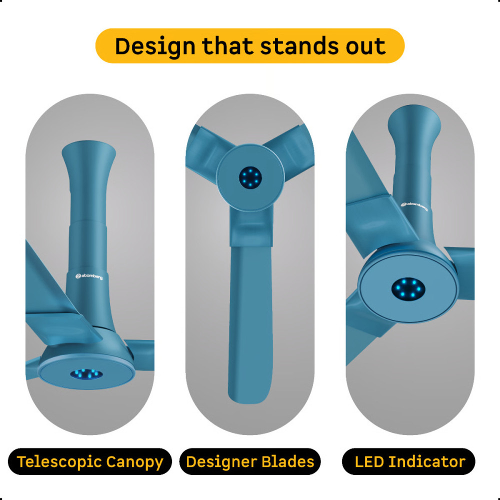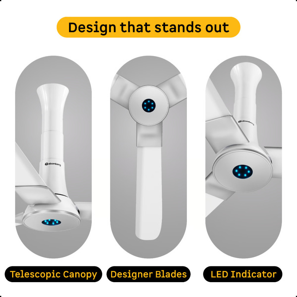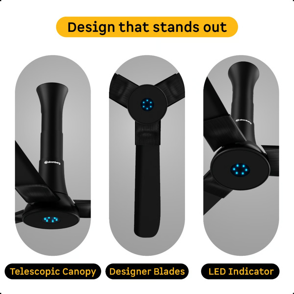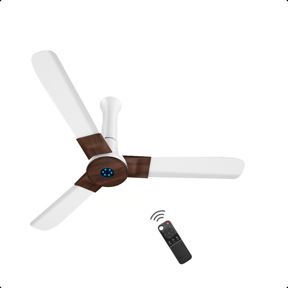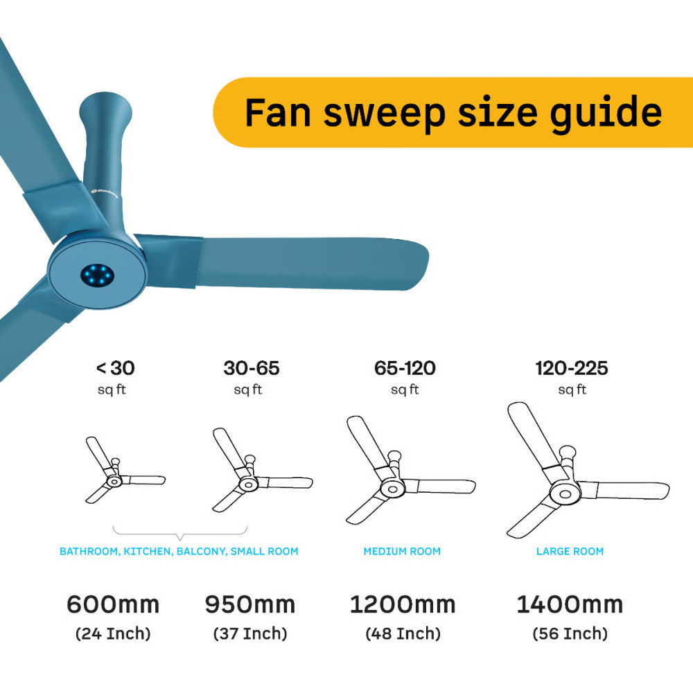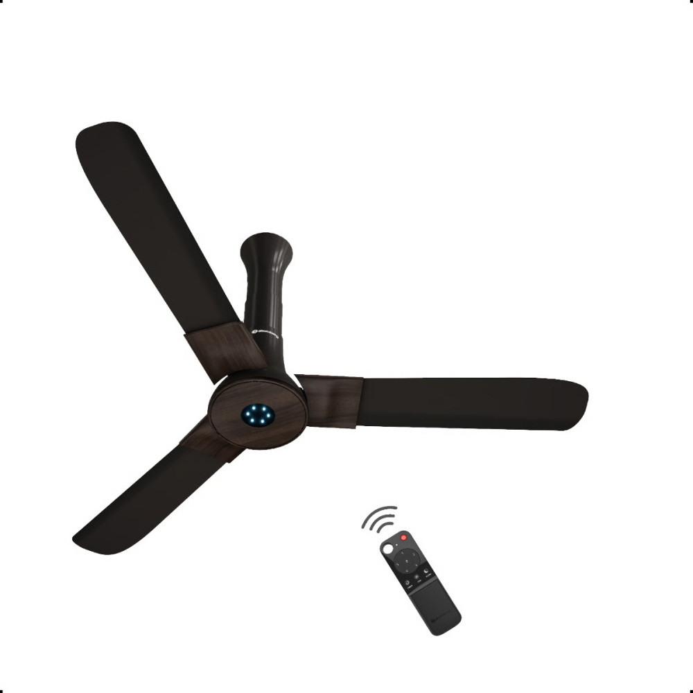 The Atomberg Studio+ ceiling fan features energy-efficient BLDC motor technology, providing a superior air delivery of 224 CMM at 360 RPM while consuming only 28W (at speed 5). The Studio+ ceiling fan saves up to 65% in electricity consumption, making it a 5-star rated choice for homes seeking efficiency. Adding to its convenience, the ceiling fan includes a Smart IR Remote for easy operation without the hassle of pairing. You can adjust the fan's speed or activate unique features such as boost mode, timer, or sleep mode at the touch of a button. Designed to enhance home decor, the Atomberg Studio+ ceiling fan has a sleek and elegant design with LED lights. Its metallic glossy blade finish adds a modern touch to any home. this ceiling fan ensures long-term reliability. The Atomberg Studio+ ceiling fan maintains consistent speed even during voltage fluctuations ranging from 165V to 285V, ensuring uninterrupted airflow. This ceiling fan runs three times longer on an inverter battery compared to conventional fans, providing comfort during power outages. Cleaning and maintenance are effortless with its dust resistant blades, making the Atomberg Studio+ ceiling fan a practical and stylish addition to any home.