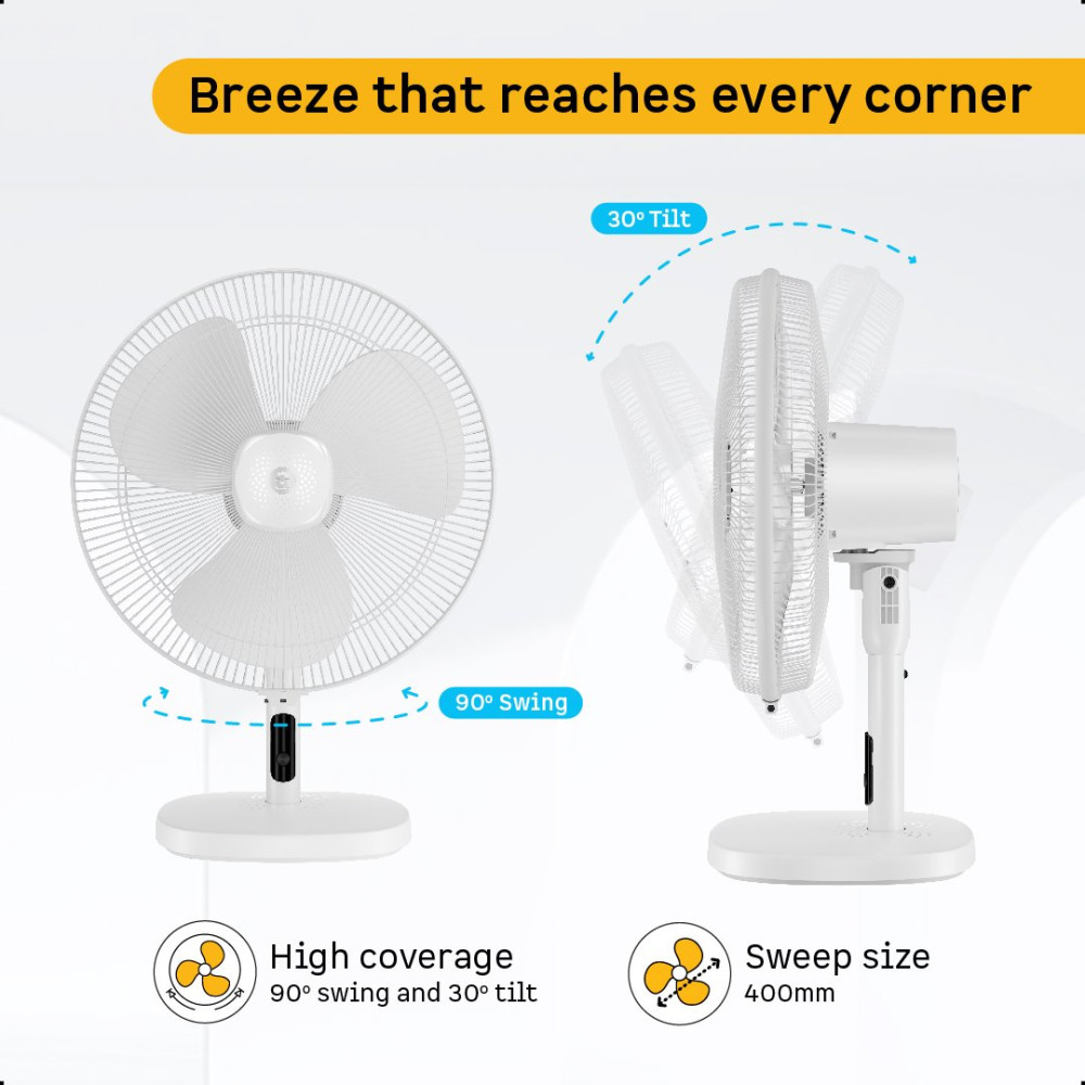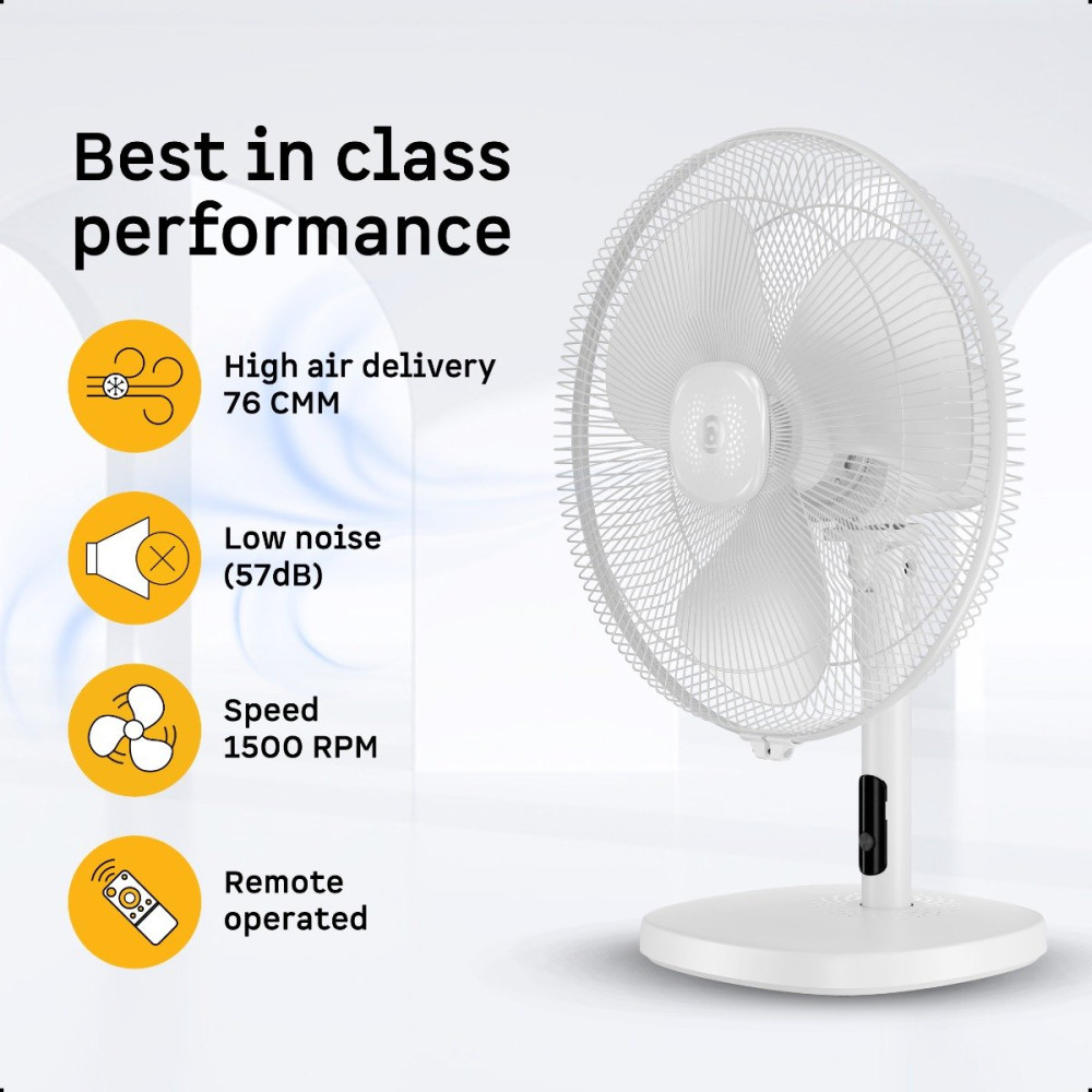 - SWING OPERATION: Atomberg Renesa Table fan features a 90ยฐ swing (controlled by remote/button) to ensure higher coverage across the room. Additionally, it can be manually tilted up to 30ยฐ, allowing you to direct the airflow precisely for maximum comfort.
