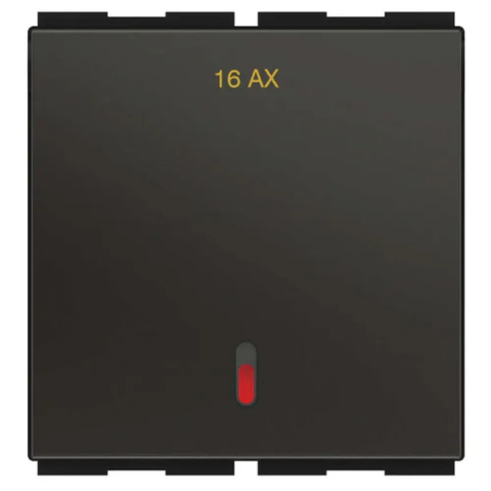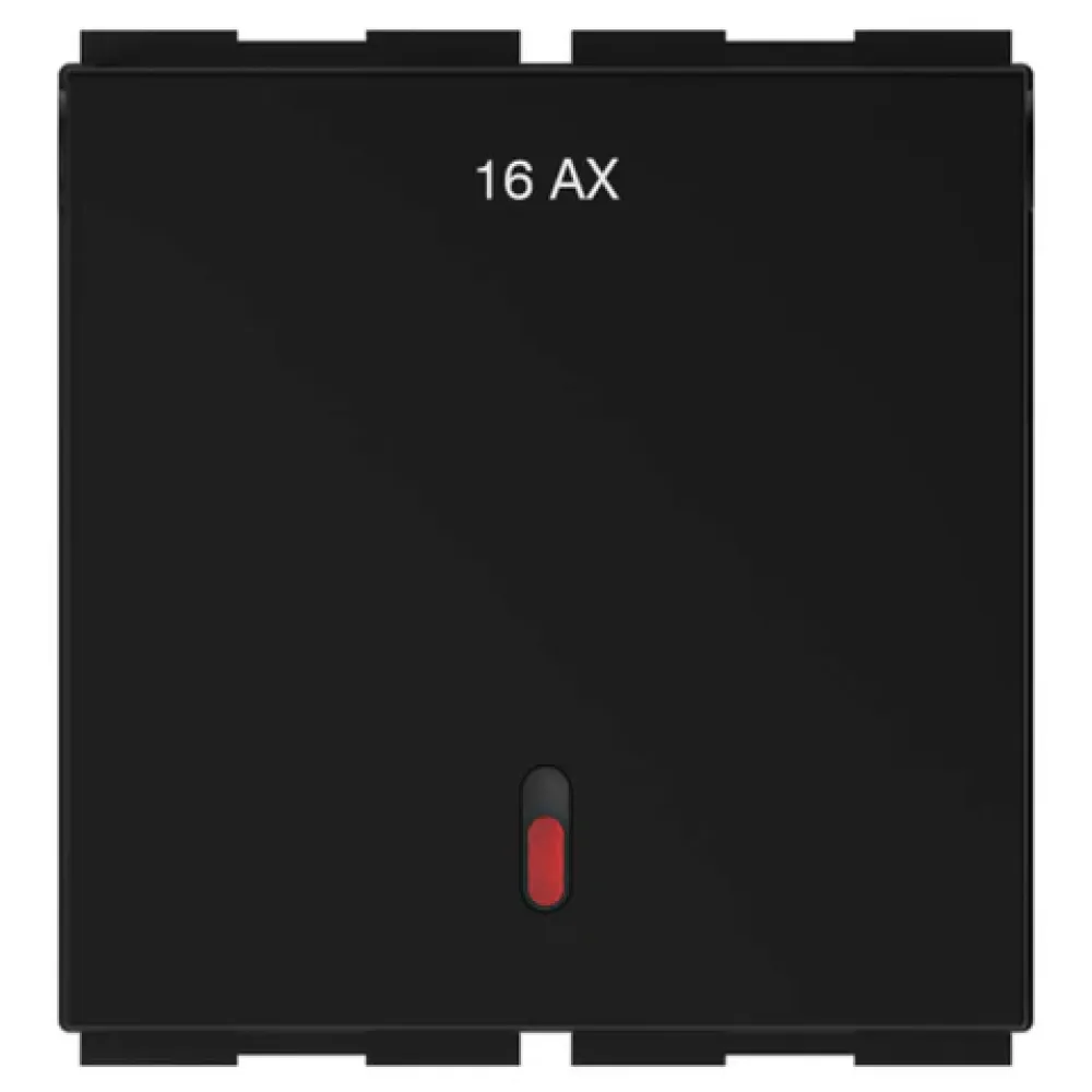 The built‑in LED indicator provides a subtle glow, making the switch easy to locate and use even in dim‑lit areas—adding both convenience and a modern touch to the installation. The 2‑module size gives a larger footprint for easier user interaction while still integrating neatly into modular face‑plates, helping the installation maintain a clean, cohesive look.