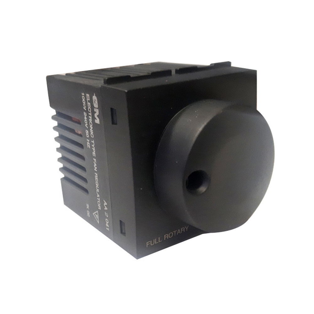 The GM FourFive AA2041 is a stylish and functional 2‑module (2M) full‑rotary fan speed regulator engineered for modern home and commercial interiors, finished in elegant Electric Grey. This regulator offers five distinct speed settings, enabling you to fine‑tune airflow from ceiling or wall fans to suit your comfort. Built for standard 240 V ~ 50 Hz mains systems, it fits flush into the GM FourFive modular plate ecosystem, delivering both aesthetic integration and functional performance. According to the manufacturer’s datasheet, the module listing confirms “2 M / Electric Grey / Voltage 240V‑50Hz / Warranty 2 years”.